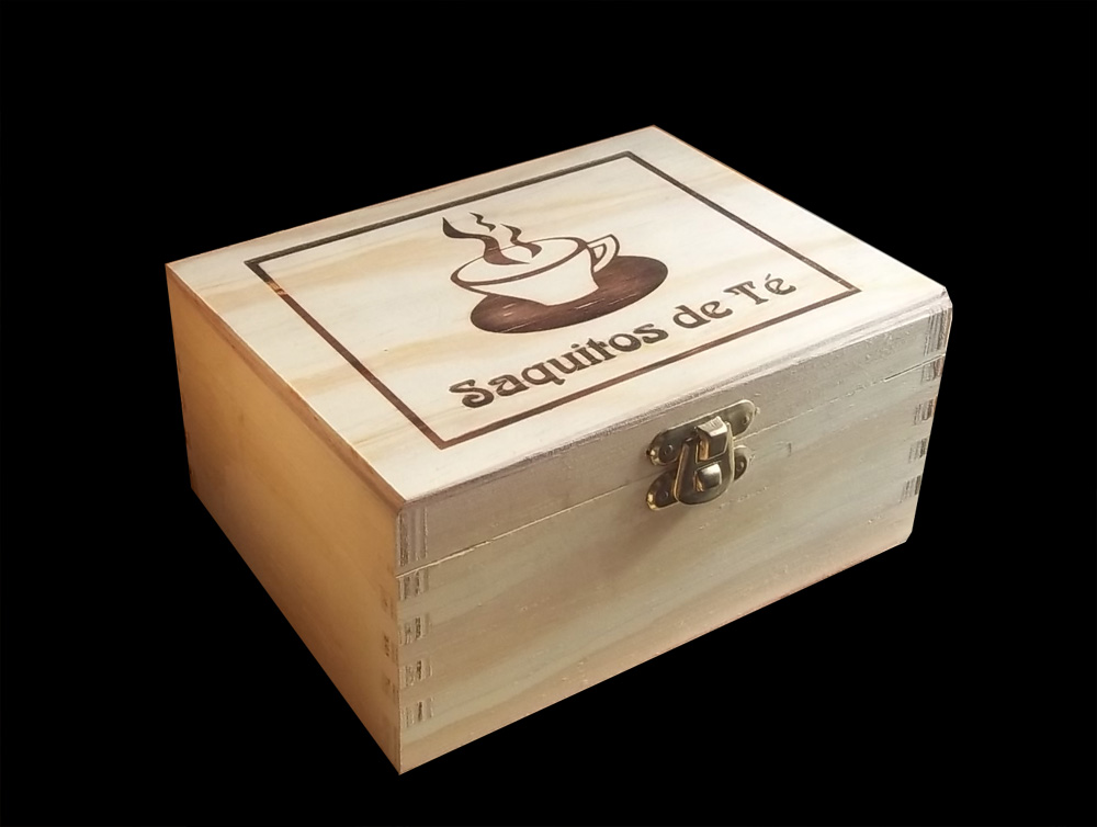 Somo fabricantes directos de cajas de madera para envasar té, logrando además excelentes grabados sobre las cajas, con láser o al fuego, pudiendo incluir logos, marcars y leyendas para personalizar sus envases demadera.