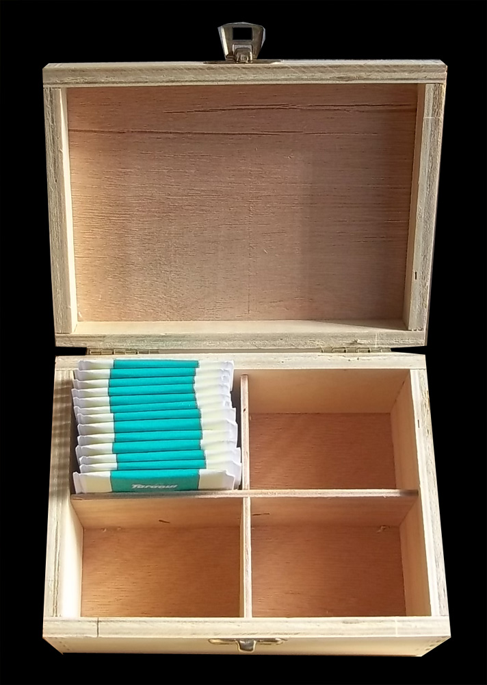 Armamos cajas para té con diferentes divisiones a pedido, para poder organizar los saquitos del modo que precise.